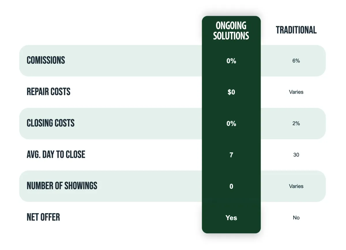 Selling your house to OngoingSolutionsCo a host of benefits that make the process swift, hassle-free, and advantageous. By choosing us, you can bypass the complexities of traditional real estate transactions, as cash buyers, we eliminate the need for financing contingencies and time-consuming appraisals.